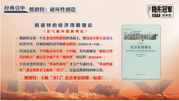 創業初期,領導需要“身先士卒”。但一旦大門打開后,作為領導者就不應該再深陷其中,而是要站在更高的角度,推動、觀察,找到新的發展方向。創業者的一生就是不斷“開門”的過程,這正是約瑟夫·彼特所提到的理論。
