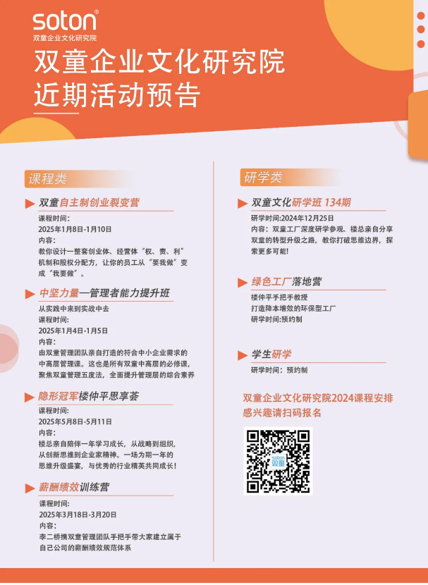 當時確實是面臨企業生存的問題,需要開辟“第二曲線”。最初并沒有計劃要做商學院,甚至在接受邀請時我都拒絕了。疫情期間,雙童平臺孵化了十幾個員工創業項目。那時,一位小姑娘看到同事們紛紛開始創業,她也產生了創業的想法。她來找我時提到,既然我能到這么多大學去講課,為什么我們不能自己開設一個學習中心?經過一番思考,我決定開設學習中心,最終發展成了今天的雙童商學院。