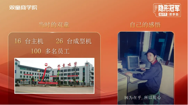 因為公司的發(fā)展已經(jīng)比較穩(wěn)定,各個創(chuàng)業(yè)體也如都雨后春筍般發(fā)展起來了。所以在2022年,李二橋在樓總的推動下也開始跨界轉(zhuǎn)型,做了講師,后面更是帶動雙童其他崗位的管理層一起,把雙童這么多年的管理經(jīng)驗進行萃取、提煉,通過雙童商學院的課堂分享給更多的中小企業(yè),幫助大家少踩坑!