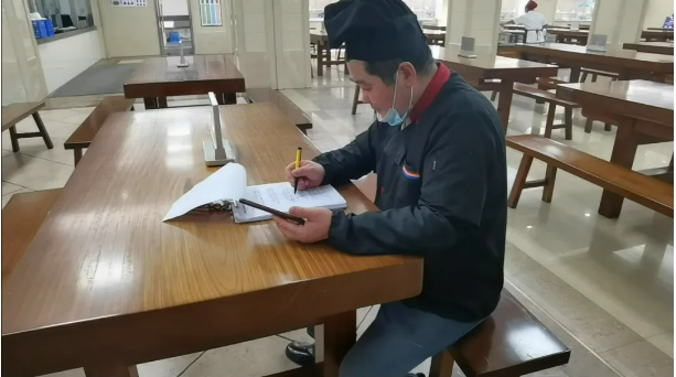 食堂師傅正在對驗收回來的菜品進行登記
