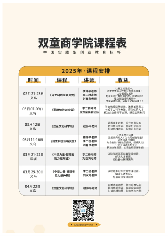 早在2022年,雙童商學院就針對該機制打磨成《自主制創業裂變營》課程,并不斷地升級迭代,以助力更多中小企業也能運用這套機制實現快速增長!