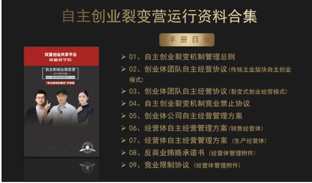 3、交付自主創業裂變模式的各項規則、文本、合同等書面資料