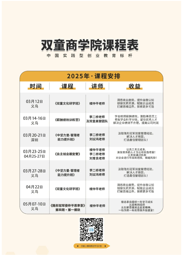 如果你也對“雙童”充滿好奇,也想賦能團隊共同成長,歡迎走進3月12日【雙童文化研學班】,與上百位優秀的創業者一起學習!少量名額,歡迎咨詢鎖定!