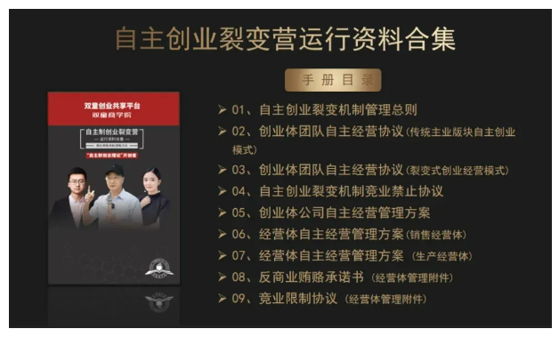 3、交付自主創業裂變模式的各項規則、文本、合同等書面資料