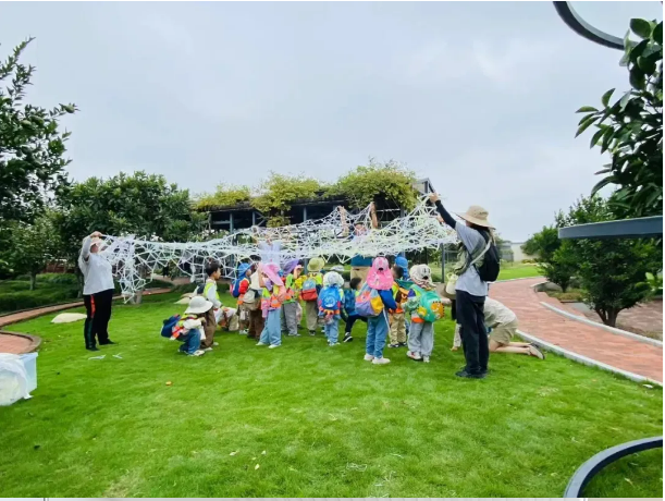 3)其他類型活動:雙童提供場地,由學生的老師自行準備小游戲,也是一個不錯的選擇。比如為一棵樹做個“吸管風鈴”;也可以在如茵的草地上共同協作,編織一張“吸管網”!