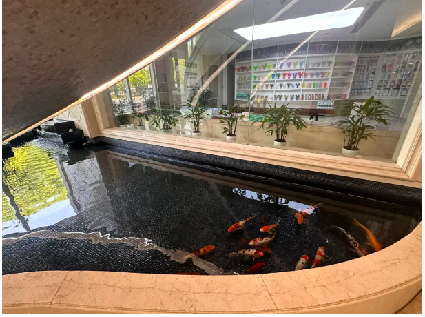 除了屋頂花園和景觀湖,“雙童”的辦公樓內還藏有一處生動別致的景致——那就是位于室內的錦鯉觀賞池。這里養育著一群色彩斑斕、體態豐滿的大錦鯉,它們不僅是辦公室里的一道亮麗風景線,更是公司用心打造工作環境的最佳見證。幾乎每一位來訪者,都會被這處室內小天地所吸引,不由自主地停下腳步驚嘆:“看這些錦鯉,個個肥美壯碩,一定是用心去照料了!”