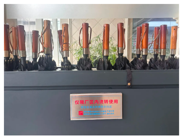 但是面對狂風暴雨時,“雙童人”卻不會有這樣的苦惱。在雙童的廠區內,放置了超過300把流動傘,確保每一位員工都不會遭受雨淋。更令人稱道的是,這些雨傘始終保持著整齊的陣列,無需專人管理便能在雨后全部歸位。這背后的原因是什么呢?