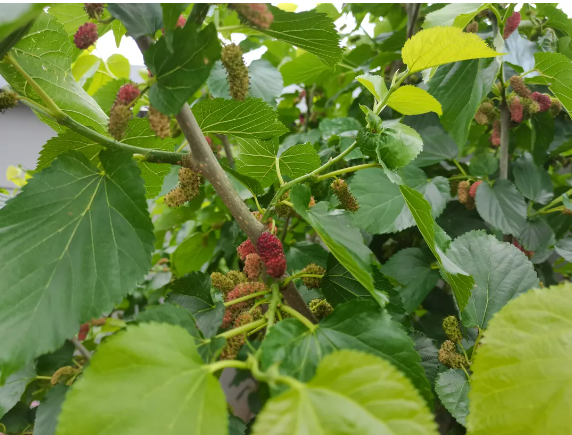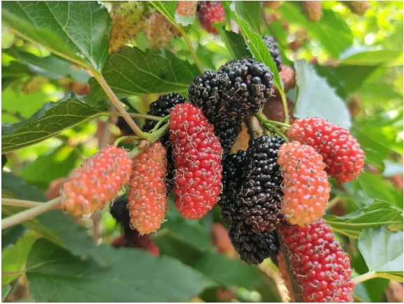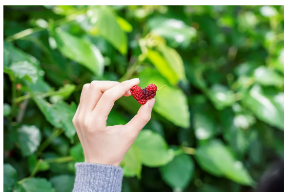 桑葚色澤紅中透紫,皮薄如蟬翼
