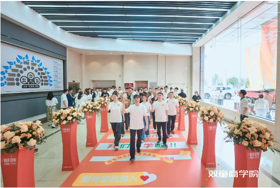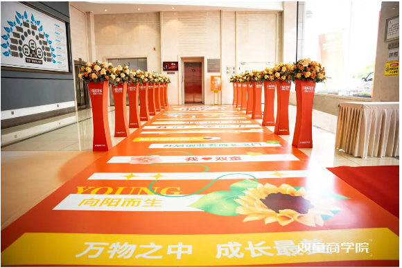為了讓本次開學典禮更加與眾不同,雙童商學院的教研團隊可謂是“煞費苦心”,提前好幾天就開始著手開學儀式的場地搭建,為了讓每一位同學都能體驗到賓至如歸的溫馨氛圍,他們將細節落實到了每一處。
