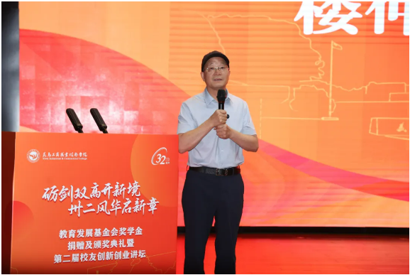 教育是長期主義,是澆灌未來的熱土!"雙童"樓仲平持續以公益行動回饋母校培育之恩。5月20日,“樓仲平獎學金”頒獎典禮上,樓仲平親自為獲獎的100位優秀學弟學妹們頒獎!這份承載著卓越追求與奉獻精神的獎學金,不僅是一份榮譽,更象征著卓越、奉獻與成就,是對同學們在各自領域杰出表現的高度認可!在頒發獎學金的過程中,樓仲平驚喜地收到了同學們親手制作的特別禮物:一幅以毛筆書寫的“穿越周期,韌性成長”字畫,以及寓意福氣和美好祝愿的中國結。這份充滿心意的禮物不僅體現了同學們對樓仲平的敬意與感激,更體現了學長與學弟學妹們之間溫暖的雙向奔赴。學生代表虞暢代表本次受表彰同學們對樓仲平先生,以及所有領導、老師表示感謝,獲得此次獎學金激勵,自己將會更加努力不辜負所有人的期待,同時也會學習樓仲平的“韌商”精神,堅持創新創業,傳承義商的拼搏和闖勁。在捐贈儀式上,樓仲平動情地表示,自己是世界上最幸福的人。這份幸福來源于在96年的時候走進了工商學院這個殿堂,走進了這片改變他以及改變義烏眾多企業家的這樣一片圣土。這些年以來,在企業的經營中也取得了一些成果。所以這個過程當中,他萌生了投身教育、回饋社會的想法,并最終促使他投身到教育事業中。正是出于這份初心,他在學校設立了“樓仲平獎學金”,希望能激勵更多學子奮發向上,傳承這份力量。