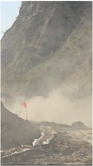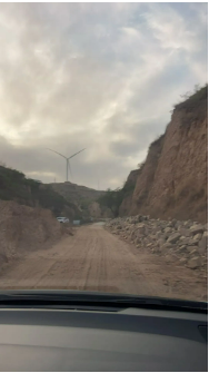 因為行駛的道路開始從柏油路變成坎坷泥濘的土路,一路上顛簸崎嶇不說,中間有一段路程,更是黃沙漫天、塵土飛揚,能見度幾乎為“0”!車轍印剛壓出半尺深,轉眼就被山風卷著砂石填平,如果此時下車步行的話,估計沒走幾步路,“膝蓋骨里都得灌進二兩黃土”來!
