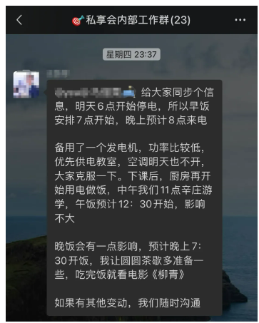 所以,當最后一批同學趕到時,夜色已經很深了。但或許誰也不會想到,這場旅途帶給“弟子班”同學們的考驗還遠不止此,更恐怖的是接下來長達16個多小時的停電!