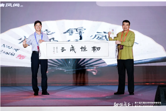 分享一結(jié)束,天雁董事長(zhǎng)張迎賓先生更是第一時(shí)間為樓老師送上了精心準(zhǔn)備的書法作品!