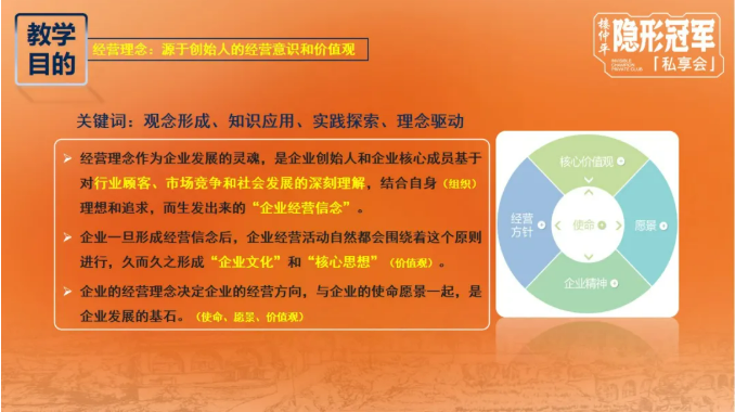 在《經營理念與企業成長》課程交付中,樓老師特別選用他個人的持續成長和雙童的發展作為教學案例,通過剖析他個人的思維認知轉變如何驅動雙童經營理念的轉變,以及帶領企業一次次穿越周期、韌性成長的故事,讓同學們更直觀地認識到:創始人的經營意識和價值觀是企業經營理念最直接來源。而經營理念是企業發展的靈魂,決定著企業的經營方向。