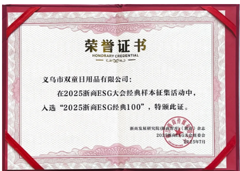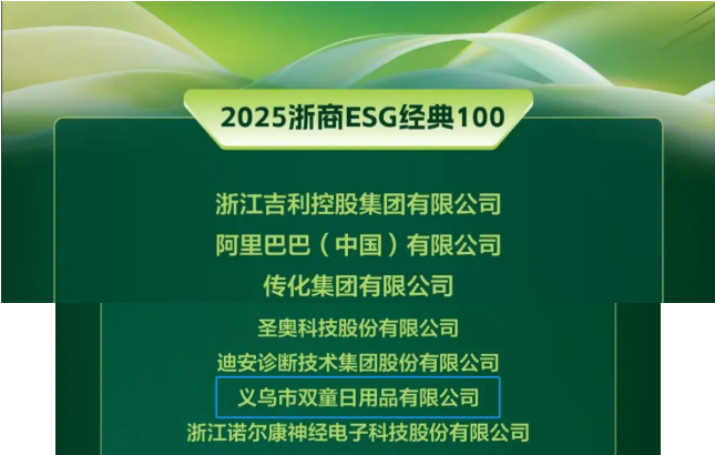 7月30日,2025浙商ESG大會上隆重發布“2025浙商ESG經典100”,其中,雙童再次憑借在ESG領域取得的卓越表現成功入圍!