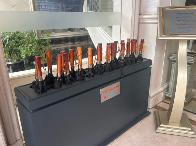 更令人稱道的是,這些雨傘始終如一地保持著整齊的隊列靜靜地立在公司的各個角落,既不需要特殊管理,也無需繁瑣的登記制度,卻總能在雨停之后如數歸位,無一遺失。想必大家也很想好奇吧,那么就請隨著吸管妞去尋找答案吧!