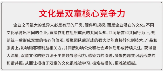 組織文化對員工行為的塑造是潛移默化且深遠持久的。正如"雙童"百米文化長廊所述:"文化是企業的核心競爭力",其精髓在于"以文化人",組織文化的最終效用在于一個“化”字,也就是在于讓正確的文化理念成為員工個人內心深處的“信念”,并自覺地去執行貫徹。