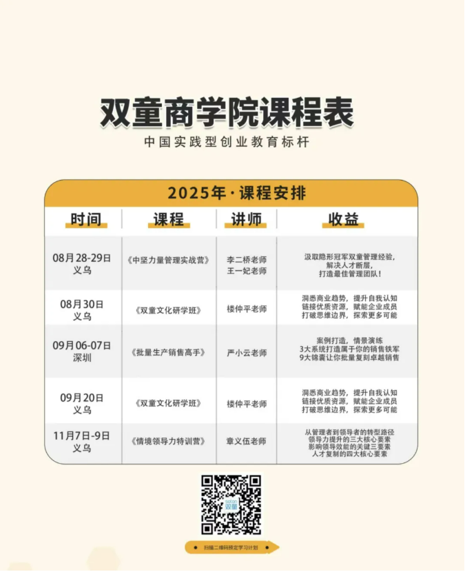 如果你也對“雙童”文化充滿好奇,也想賦能團隊共同成長,歡迎走進【雙童文化研學班】,與上百位優秀的創業者一起學習!少量名額,歡迎咨詢鎖定!