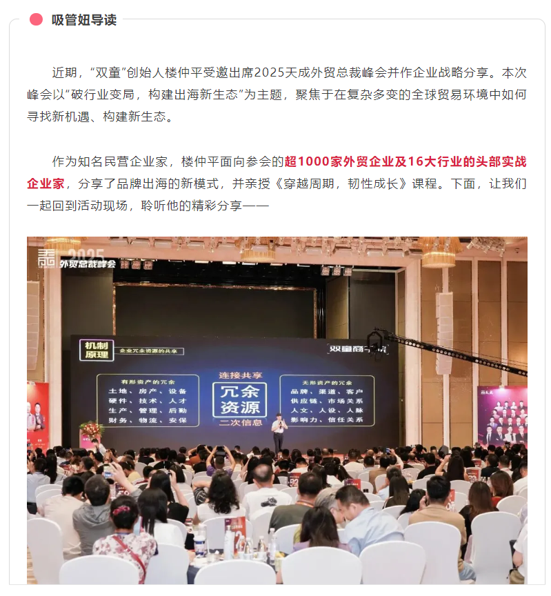 @樓仲平 受邀2025天成外貿總裁峰會!為超1000位創業者分享冠軍企業的“韌性成長”之道!