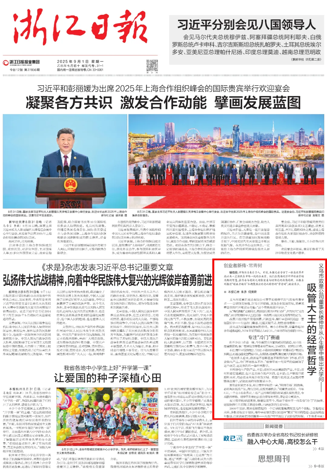 市場活力來自于人,尤其來自于企業家,來自企業家精神。近日,創始人樓仲平受邀作為《浙江日報》“創業者新傳·常青樹”系列的首發專訪對象,分享了其47年創業歷程中所積累的經驗與管理智慧。報道一經發布,還獲多家媒體于第一時間轉載,引發社會各界廣泛關注。