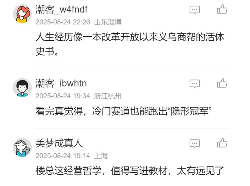 報道在《潮新聞》客戶端發布后,眾多讀者在第一時間就紛紛留言,點贊采訪中體現的充滿韌性、持續創新的浙商精神與穿越周期的商業智慧。