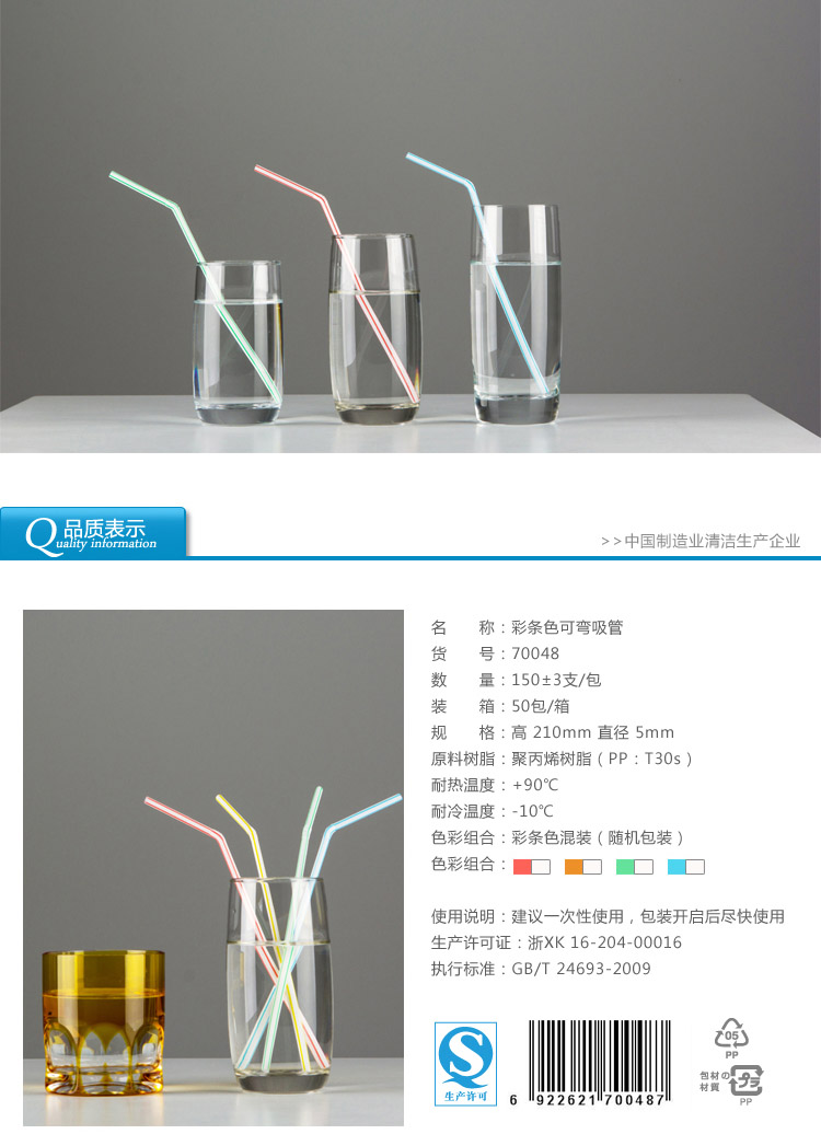 70048雙童150支彩條色家庭裝彎吸管