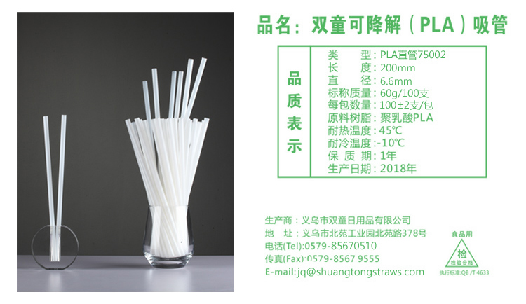雙童PLA可降解環保吸管 一次性可樂冷飲本色直管